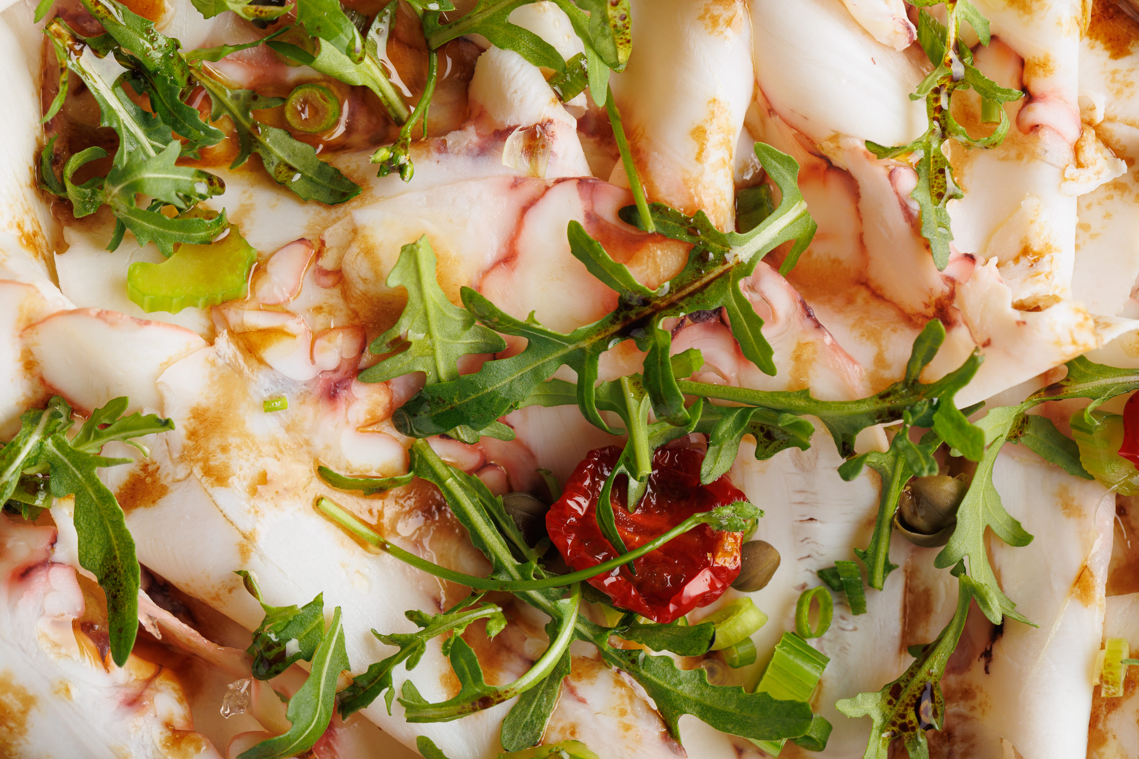 Гостей ждет прекрасное настроение и подлинное удовольствие от блюд. Среди фестивальных позиций в стол – карпаччо из осьминога (5700 руб.) с овощным дополнением: руколой, сельдереем, луком сибулет, каперсами, лимоном, вялеными томатами, оливковым маслом и соусом бальзамик.