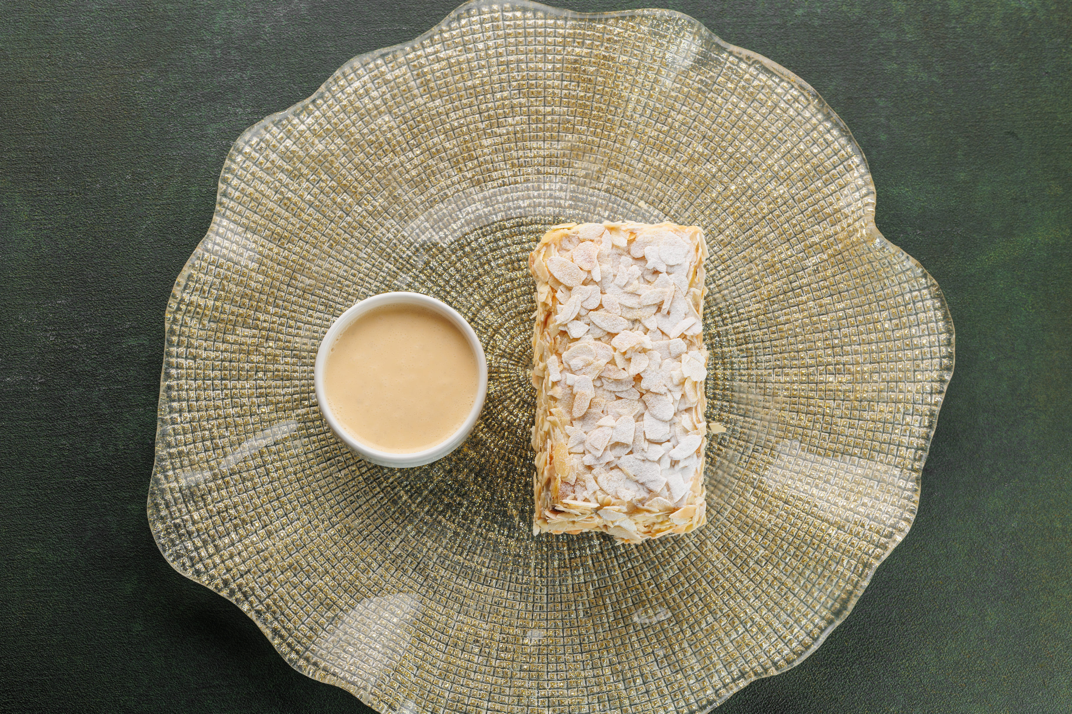 В России принято собираться за столом ради чаепития, и Butler точно знает, что предложить к ароматному и крепкому, как положено глубокой осенью, чаю. Безе с черносливом (1400 руб.) не похоже ни на один другой десерт: строгая геометрическая форма, миндальные лепестки и нежное содержимое – воздушное безе и заварной крем. А при подаче официант польет его ванильным соусом.